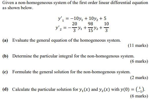 Solved Given A Non Homogeneous System Of The First Order Chegg Com